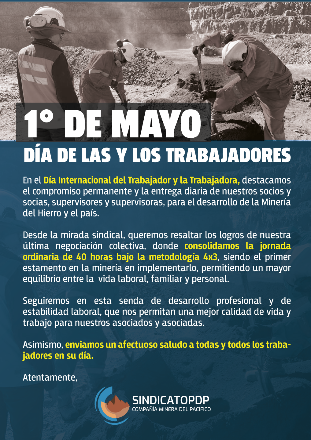 A continuación encontrarás el mensaje y saludo del Sindicato PDP: