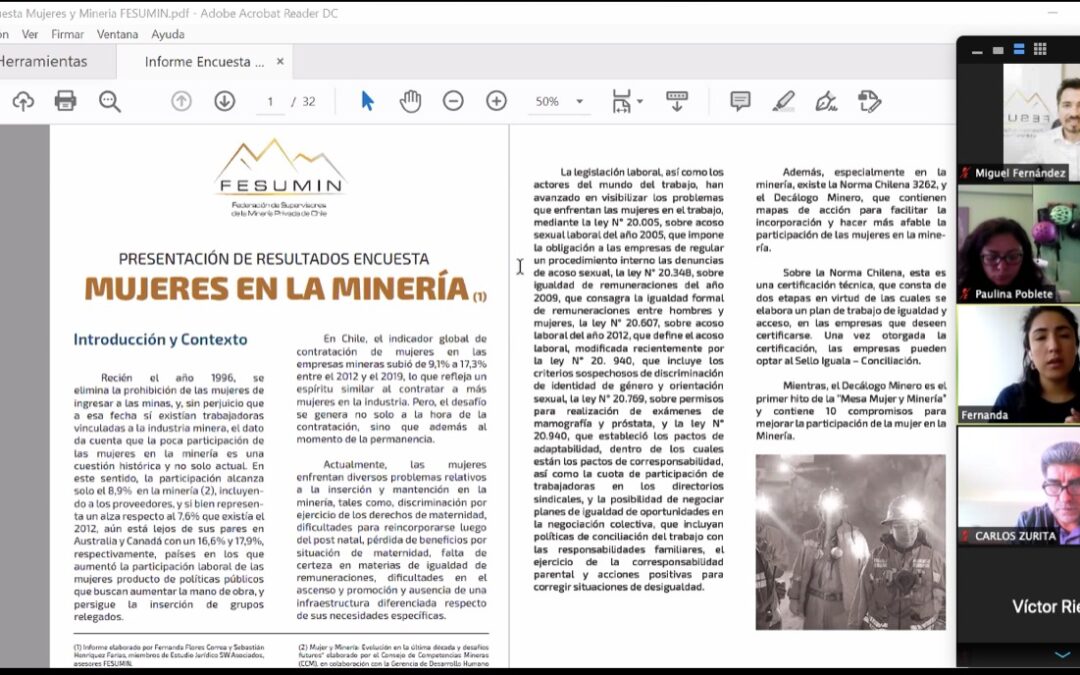 El Sindicato PDP participó de la exposición de la Federación de Supervisores de la Minería Privada de Chile sobre Estudio Previsional que realizaron junto a la Fundación Sol, donde se analizó información previsional de los trabajadores mineros, con el objetivo que permita tomar las mejores decisiones para la gestión sindical. Además, se entregó un avance del Estudio de Fesumin “Mujeres en Minería”, que entregó datos bastantes relevantes y preocupantes respecto a la situación de las colegas en el rubro.