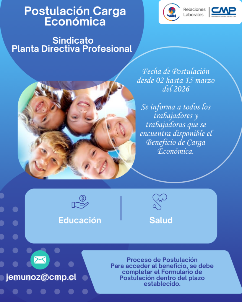 En el marco de nuestro contrato colectivo, contamos con 5 cupos para cargas económicas no causantes de asignación familiar, tales como hijos/as o familiares que, sin ser reconocidos legalmente como carga familiar, vivan a expensas del trabajador/a.